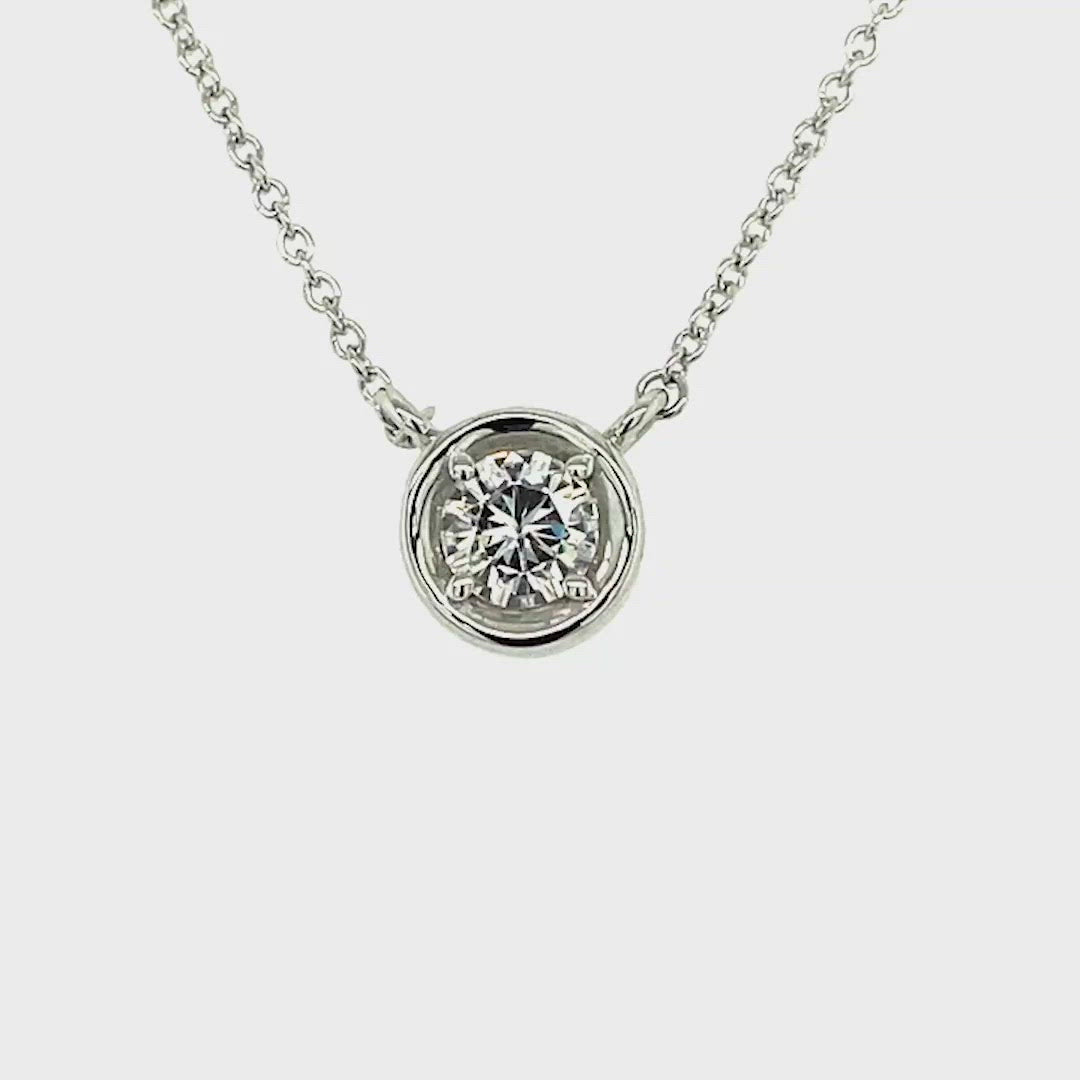 0.33 CTW DEW Round Moissanite Bezel Necklace in Sterling Silver