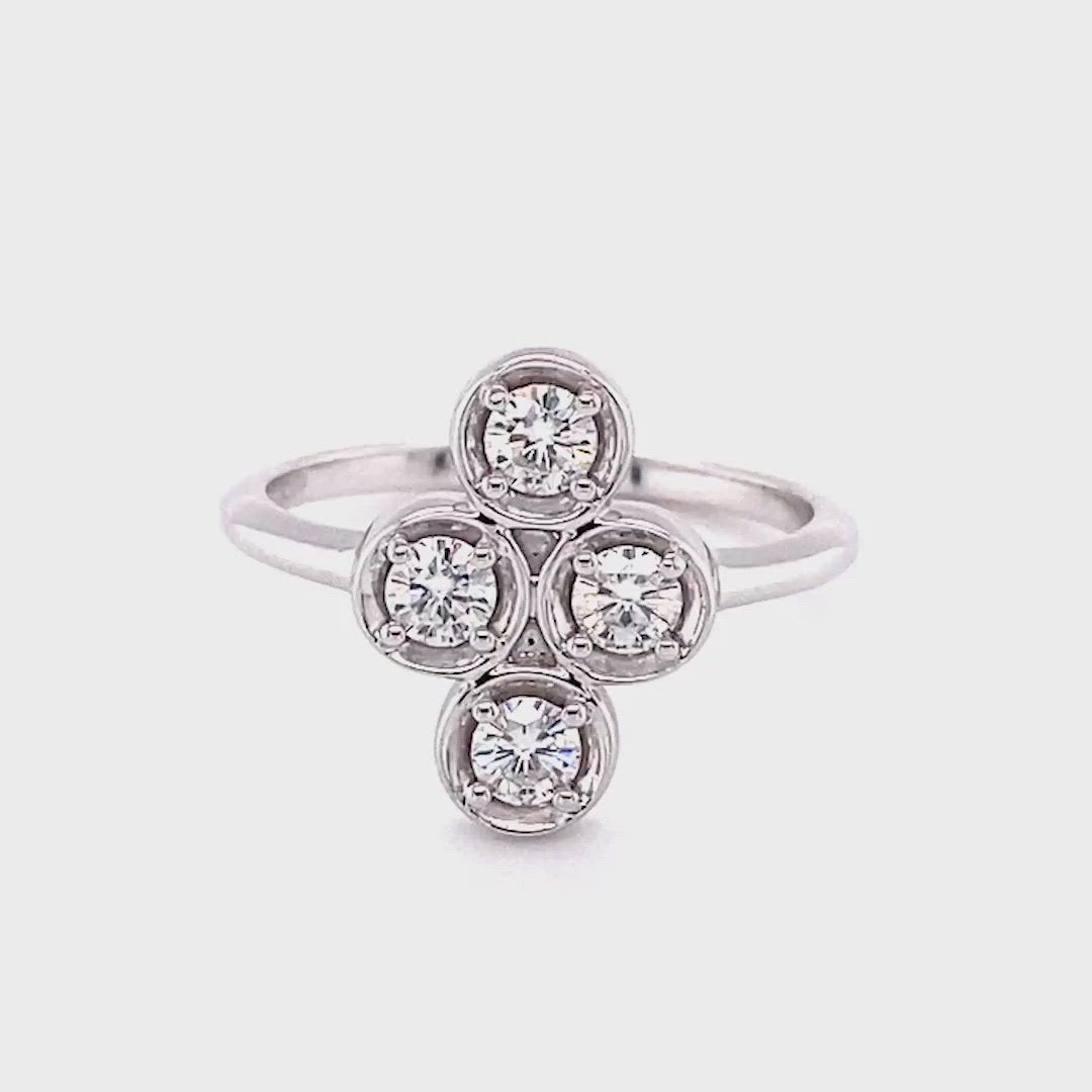 Absolutely magnificent! This sterling silver ring is the perfect complement to any jewelry box. Coming in at 0.52 carats of diamond equivalent weight from four moissanite gemstones, you can't go wrong!