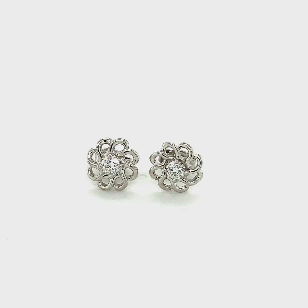 0.26 CTW DEW Round Floral Moissanite Stud Earrings in Sterling Silver