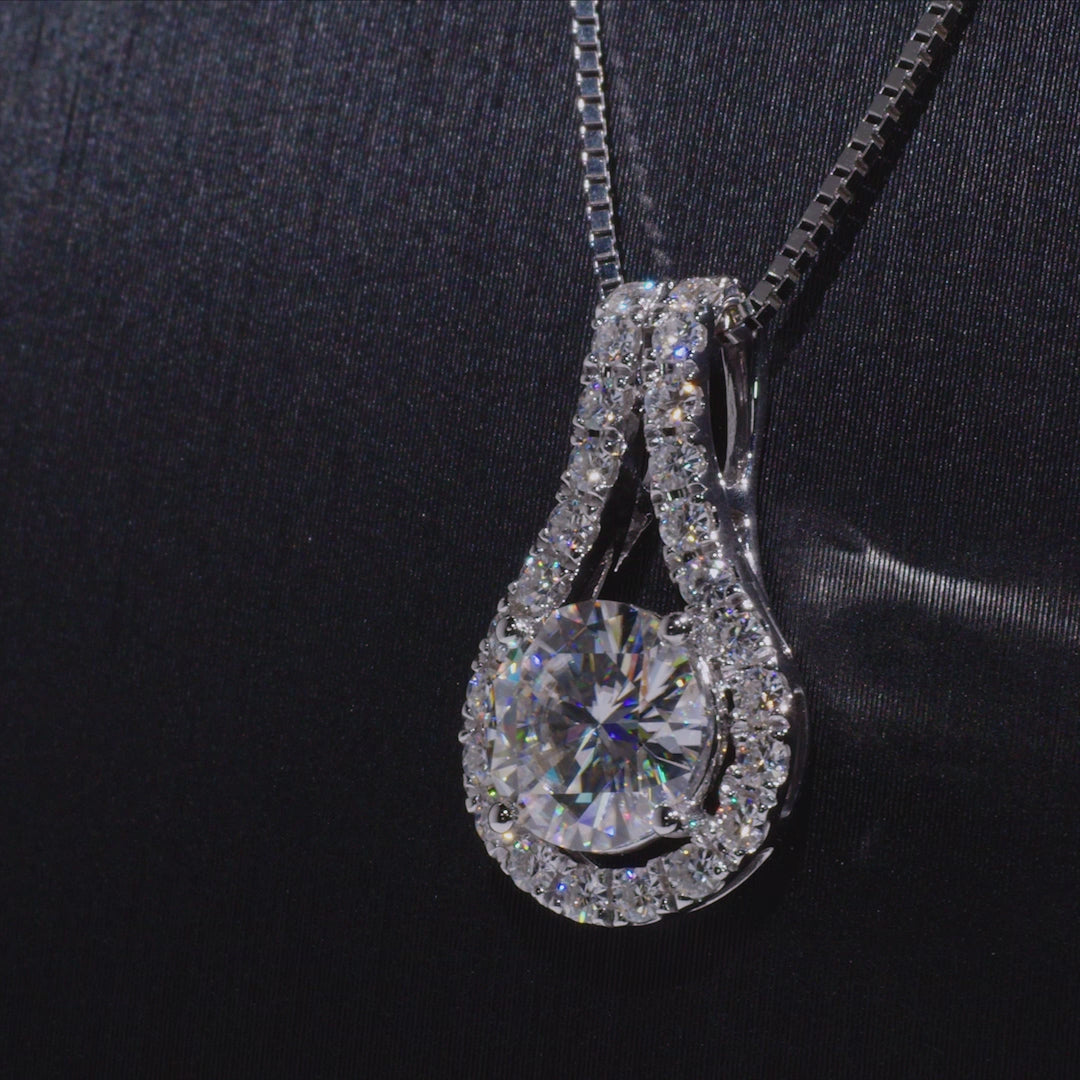 1.61 CTW DEW Round Moissanite Accented Drop Pendant in 14K White Gold