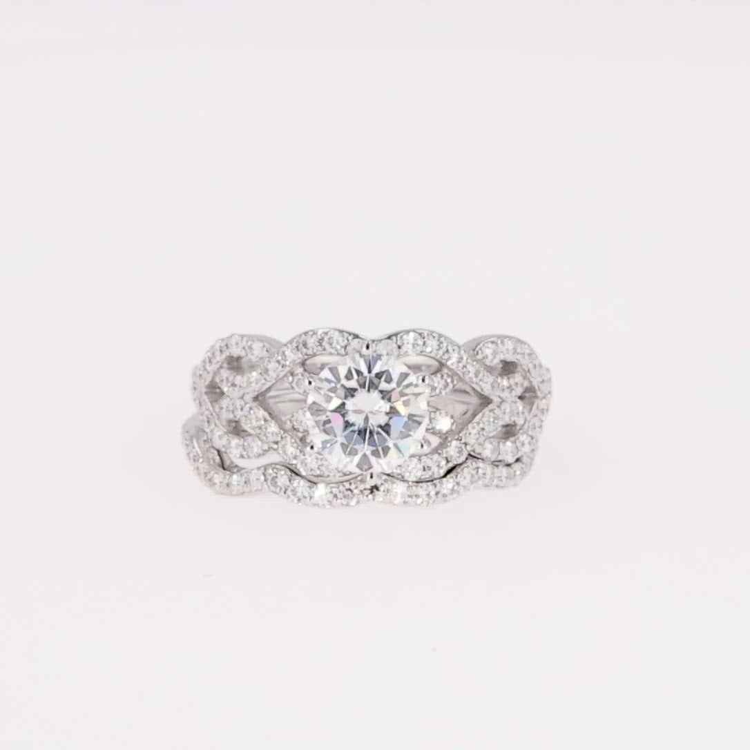 1.85 CTW DEW Round Moissanite Bridal Set in 14K White Gold