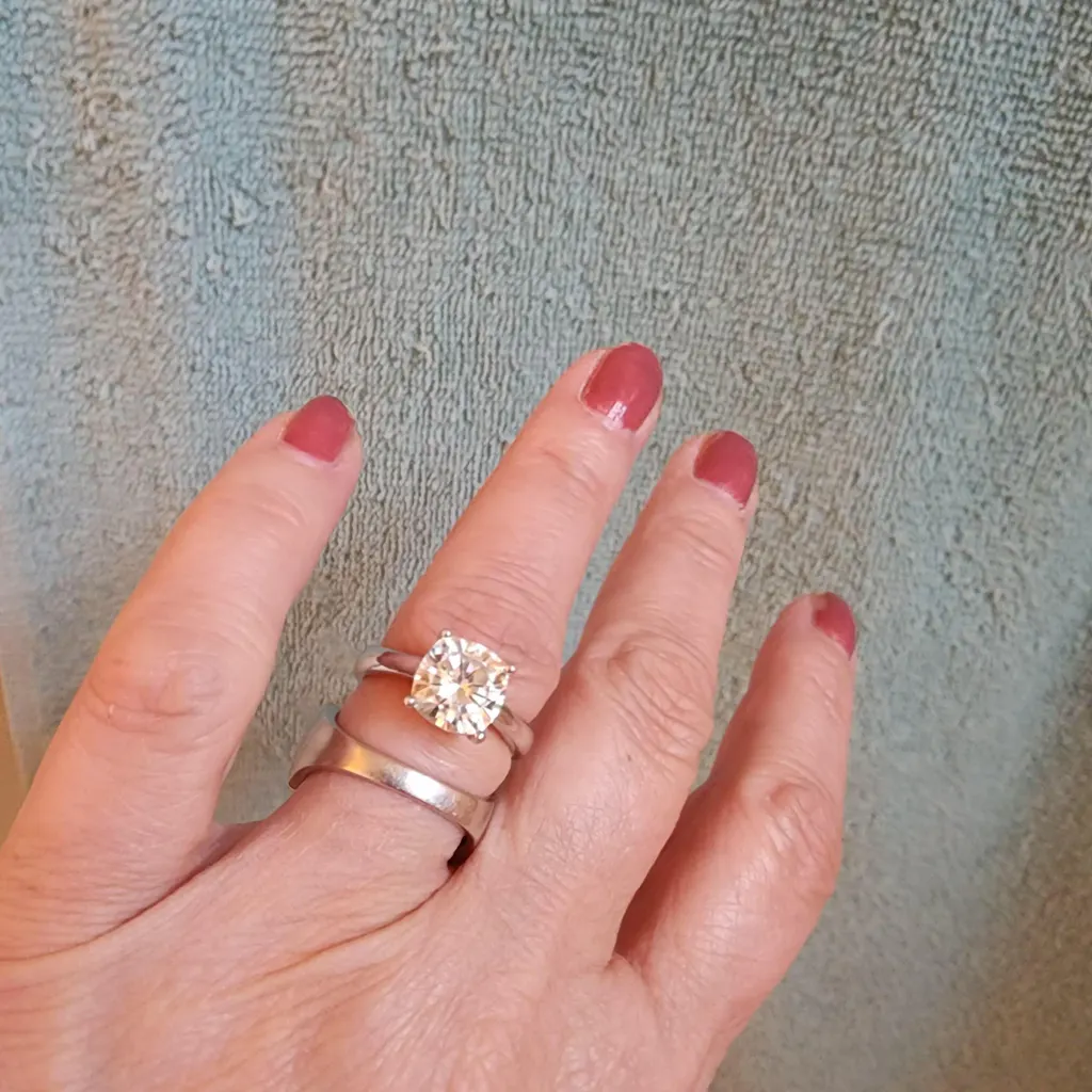 Bold and brilliantly elegant, this 2.80 CTW DEW Cushion Moissanite Four-Prong Solitaire Engagement Ring in Sterling Silver showcases a stunning cushion-cut moissanite at its center. The four-prong setting allows maximum light to enter the stone, highlighting its exceptional fire and sparkle from every angle.