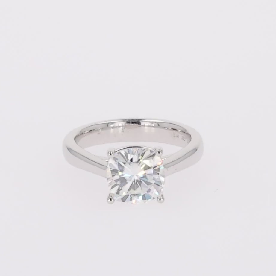 2.80 CTW DEW Cushion Moissanite Four Prong Solitaire Engagement Ring in Sterling Silver