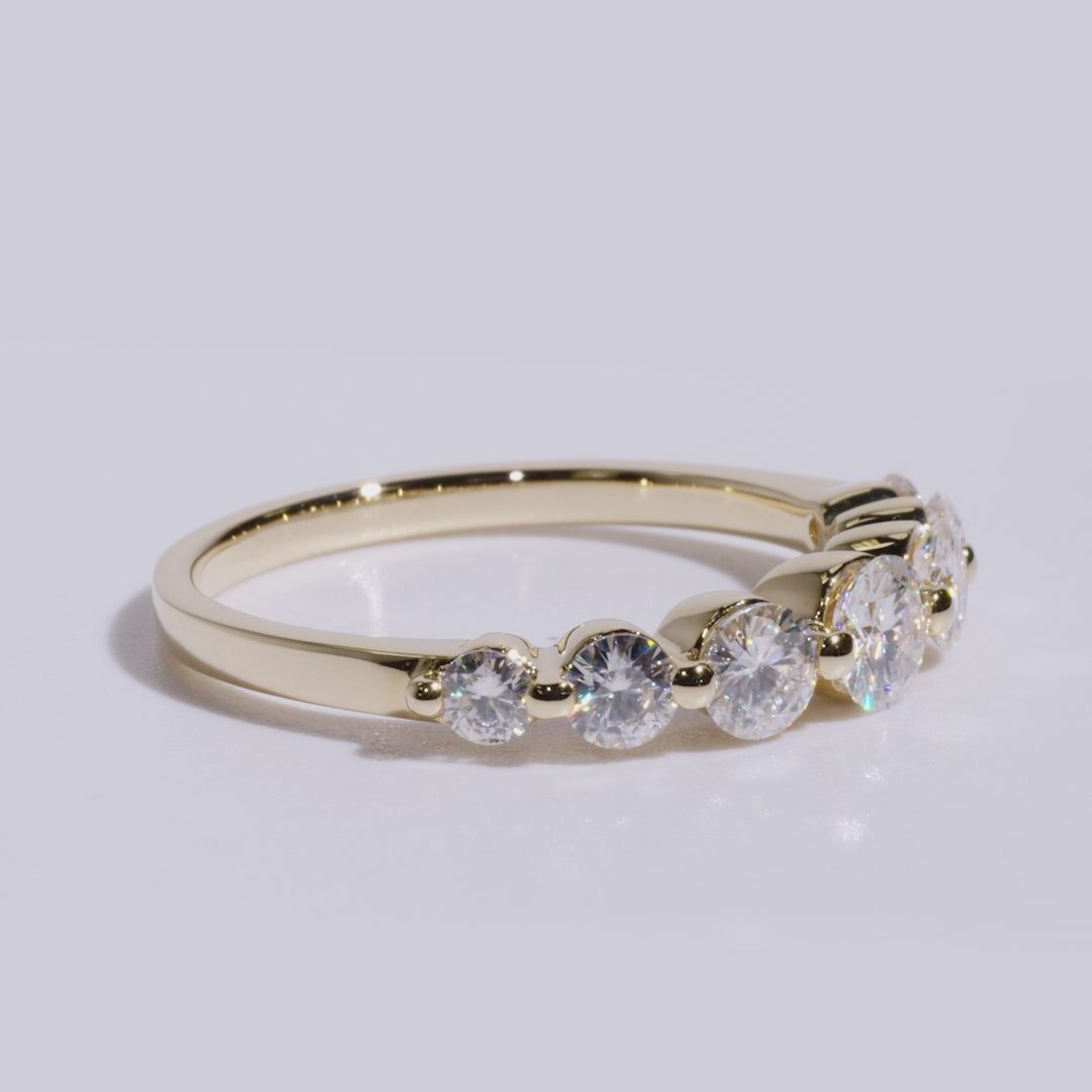 An anniversary band with elevated style, showcasing seven round gemstones across the top. Chic elegance for everyday.